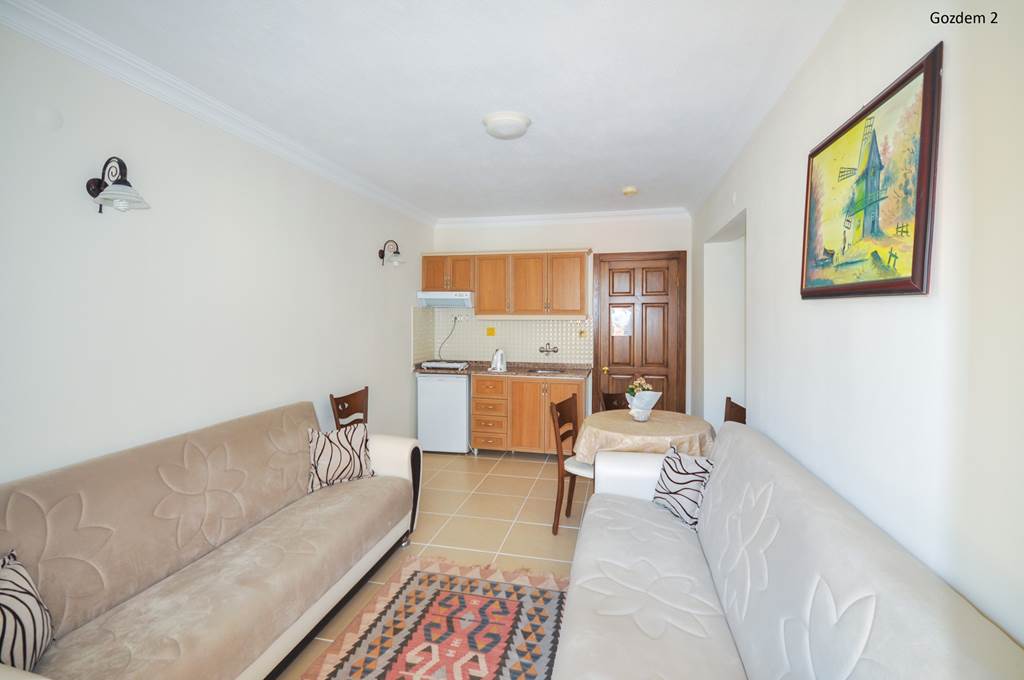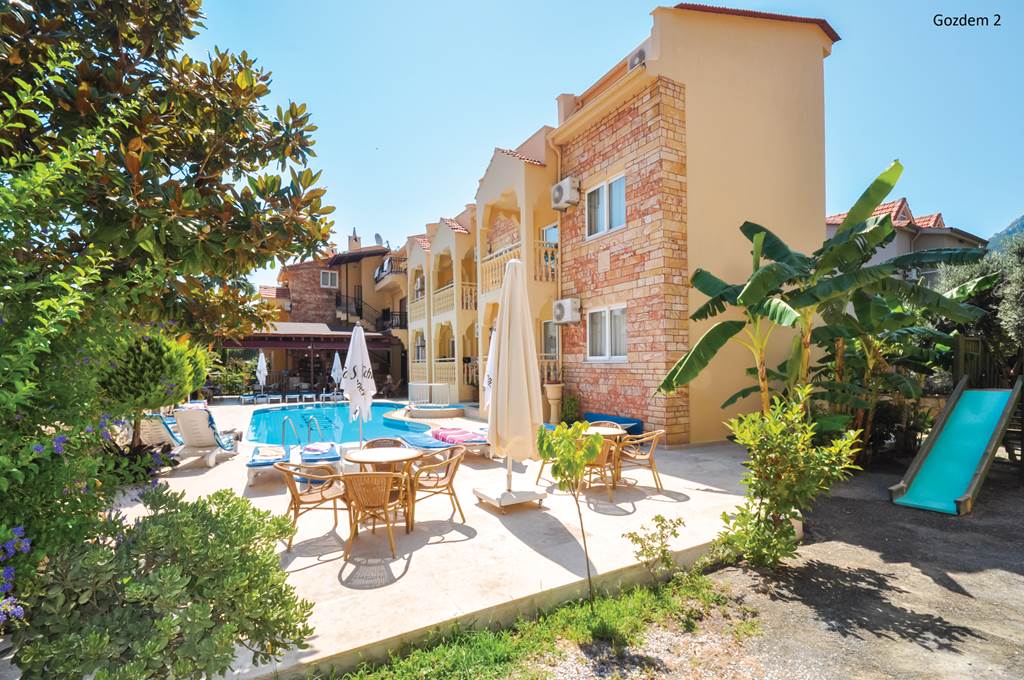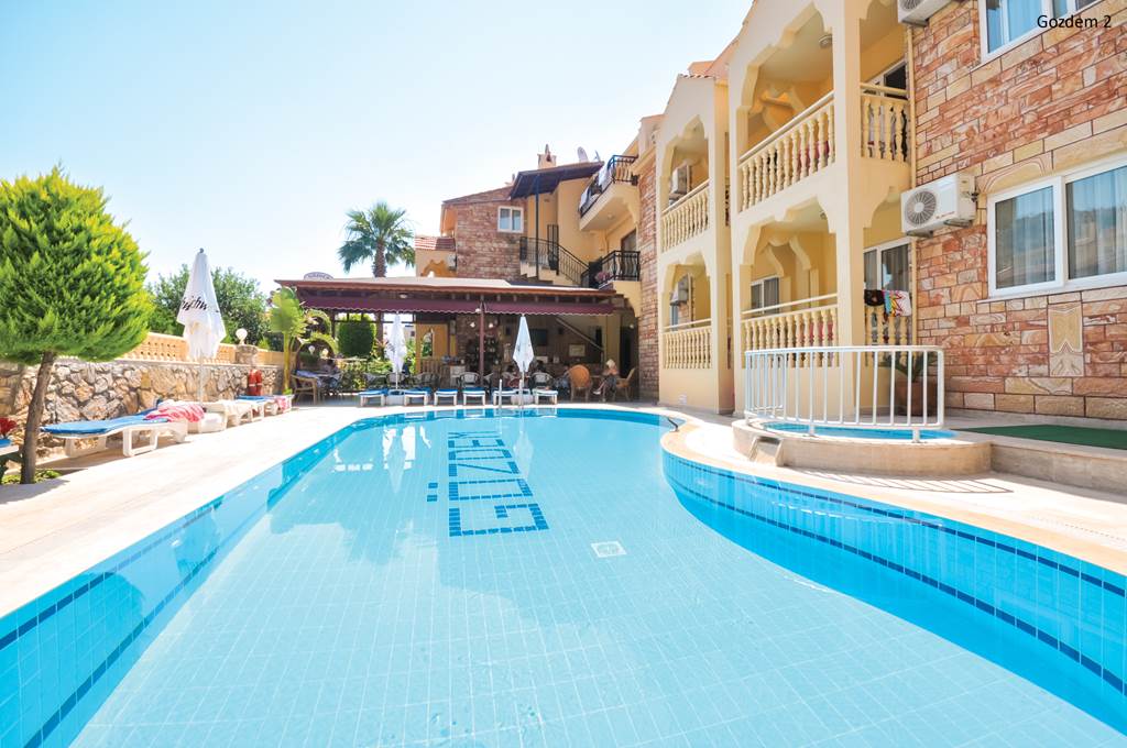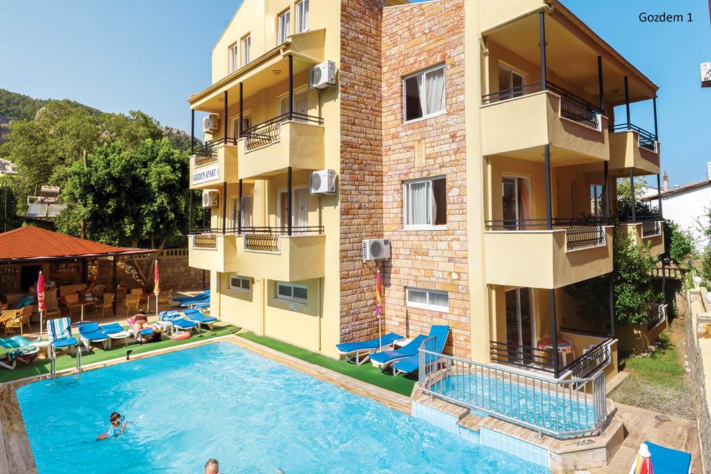 The family-run Gozdem apartments are in a fantastic location close to both the beach and Turunc resort centre. There?s a choice of two pool areas which are perfect for relaxing and enjoying the sun, and each has a snack bar. On an evening, you can take a stroll into the peaceful centre of Turunc with a lovely selection of eateries and bars to try. Apartments are simple and comfortable, making this a perfect choice for both couples and families looking for a laid-back holiday.Studios sleep up to 2 adults and have bathroom containing a shower, air conditioning*, hairdryer, television, fridge-freezer, kettle, double cooking rings and balcony. One Bedroom apartments are also available.