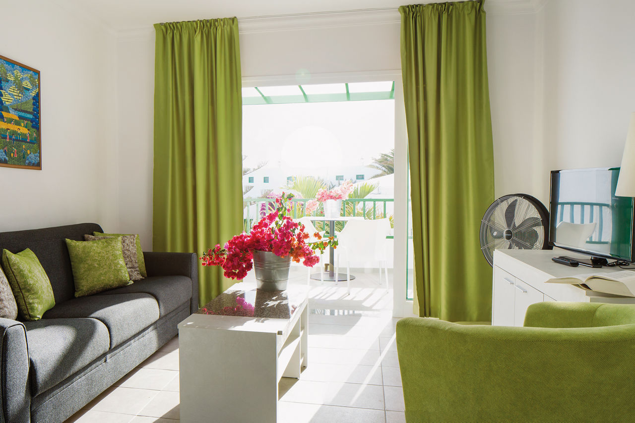These wonderful white washed apartments with stylish green woodwork have a traditional Canarian feel and the pretty green hues are carried over in to the stylish and spacious apartments. With a generous kitchenette and private balcony or terrace so you can dine al fresco for every meal, they are perfect for family and friends to share some time together. Choose to have dip in the lovely pool, perfect for cooling off after soaking up the Lanzarote sun or pick up a refreshing drink at the pool bar. Set in a charming complex with manicured gardens this accommodation is a little oasis in the buzzing resort of Costa TeguiseOne Bedroom apartments sleep up to 2 adults and 2 children and have bathroom containing a bath with shower attachment, hairdryer, flat screen television, double cooking rings, microwave, kettle, toaster and terrace. Room upgrade options are also available.