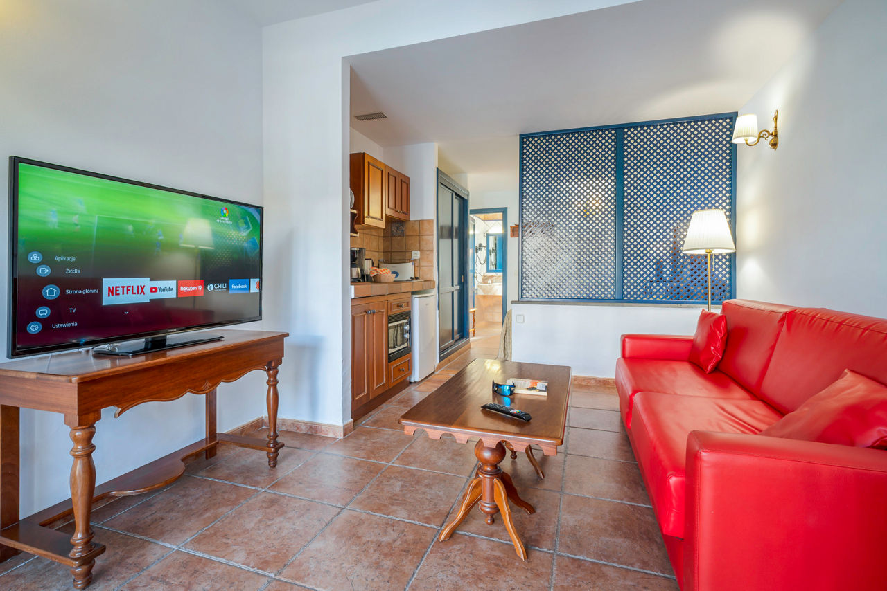 The traditional, Canarian-style Nazaret Mansion boasts an excellent location close to Costa Teguise?s white, sandy beach and a selection of shops, bars and good quality restaurants. For fun days out, you are within easy reach of an 18-hole golf course, the Costa Teguise Aquapark and the capital of Arrecife which is a great place to pick up some souvenirs. Back at the complex, days can be spent relaxing around the pretty pool area. There is a great range of accommodation available, including larger apartments. If you don?t feel like cooking, there is a Half Board option. Couples and families alike will find the Nazaret Mansion a great choice for a relaxing holiday, enjoying all Costa Teguise has to offer!Studios sleep up to 2 adults and have bathroom containing a shower, hairdryer, flat screen television, coffee making facilities, double cooking rings, fridge, kettle, microwave, oven, toaster and terrace. Complimentary bottle of wine upon arrival. Room upgrades are also available.