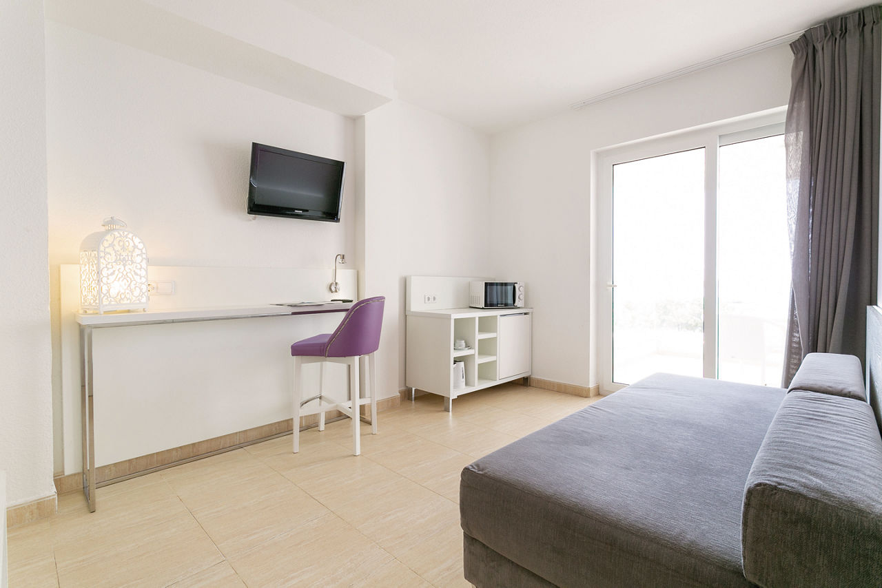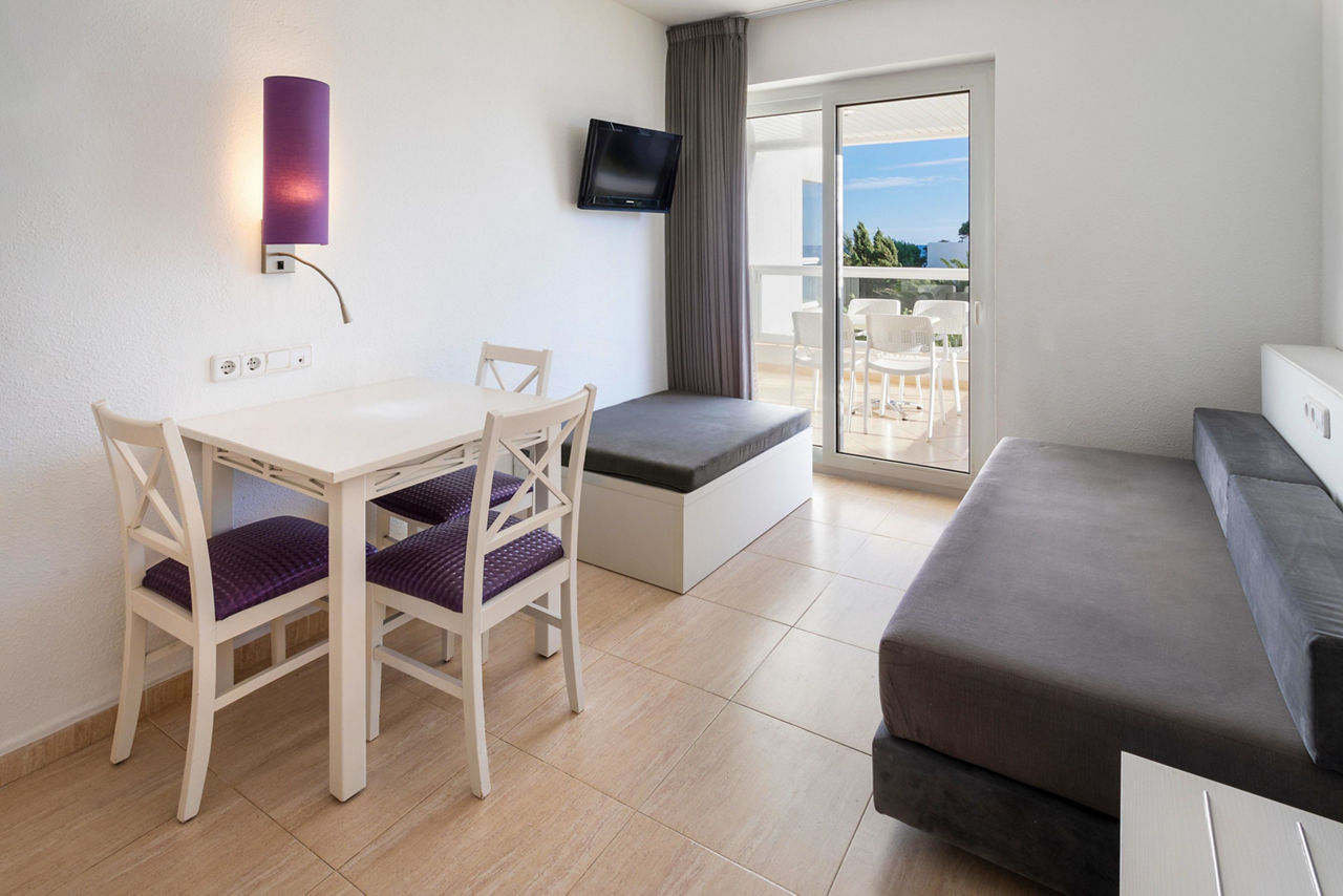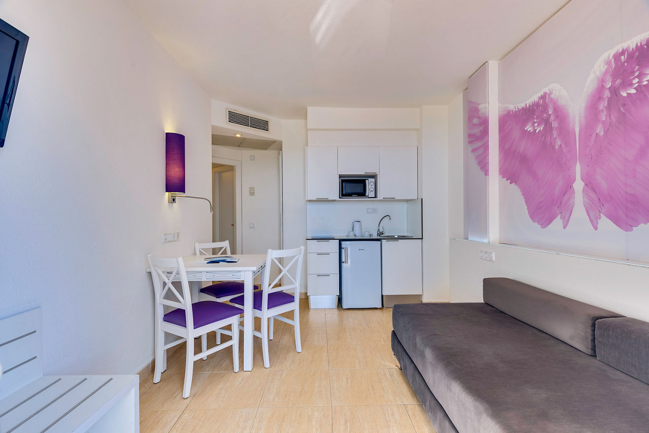 Tropic Garden Hotel Apartments has a fantastic seafront setting near Santa Eulalia, on Ibiza?s sun-kissed east coast. Relax by the large, lagoon-style pool while the kids enjoy the splash park and fun-packed kids? club activities. Prefer the beach? It?s just minutes away! Why not elevate your stay and opt for the Selected service? You?ll get access to exclusive areas and added extras like premium loungers, bathrobes and slippers, and a mini-bar. There?s a fab buffet restaurant with a dedicated station for the little ones, alongside two bars serving those refreshing drinks. The picturesque resort of Santa Eulalia is nearby, if you fancy exploring!One Bedroom apartments sleep up to 3 adults and 1 child with a twin bedroom, lounge with sofa beds and pull out bed, full bathroom, hairdryer, air conditioning, satellite TV, kitchenette with fridge, microwave, kettle, toaster and balcony or terrace. Studios sleep 2 adults and Half Board Plus are also available.