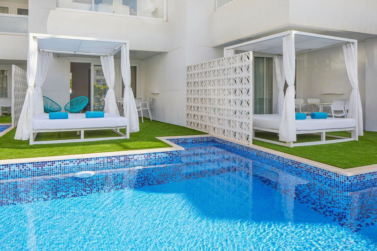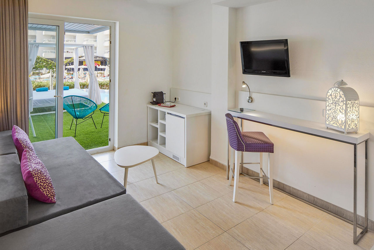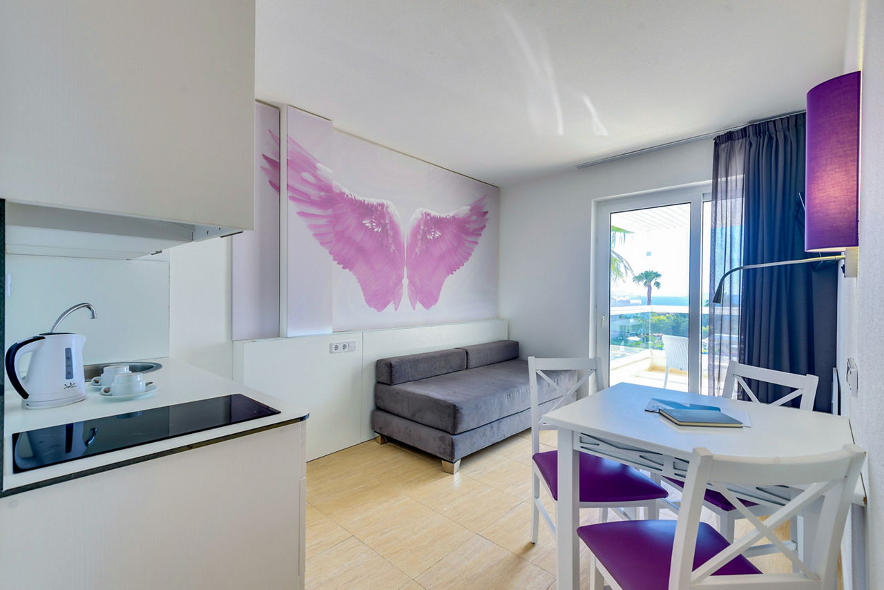 Tropic Garden Hotel Apartments has a fantastic seafront setting near Santa Eulalia, on Ibiza?s sun-kissed east coast. Relax by the large, lagoon-style pool while the kids enjoy the splash park and fun-packed kids? club activities. Prefer the beach? It?s just minutes away! Why not elevate your stay and opt for the Selected service? You?ll get access to exclusive areas and added extras like premium loungers, bathrobes and slippers, and a mini-bar. There?s a fab buffet restaurant with a dedicated station for the little ones, alongside two bars serving those refreshing drinks. The picturesque resort of Santa Eulalia is nearby, if you fancy exploring!One Bedroom apartments sleep up to 3 adults and 1 child with a twin bedroom, lounge with sofa beds and pull out bed, full bathroom, hairdryer, air conditioning, satellite TV, kitchenette with fridge, microwave, kettle, toaster and balcony or terrace. Studios sleep 2 adults and Half Board Plus are also available.