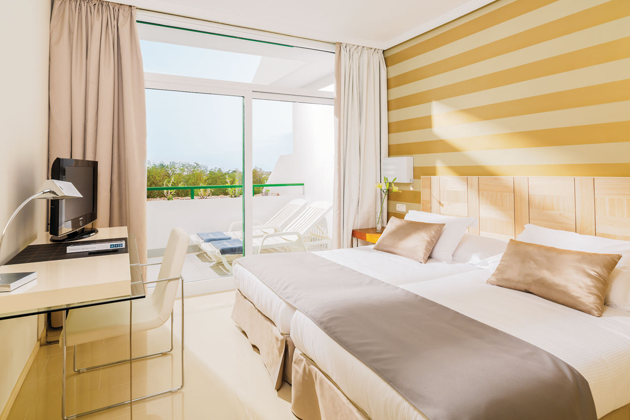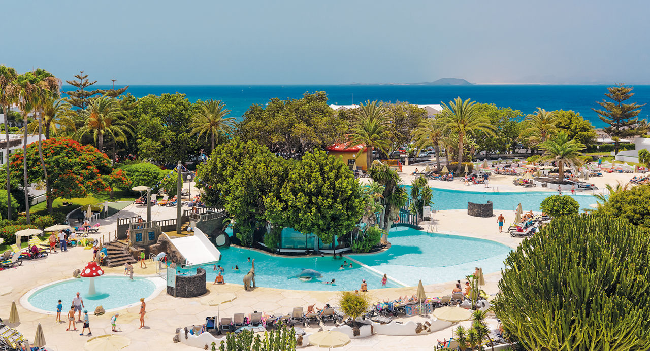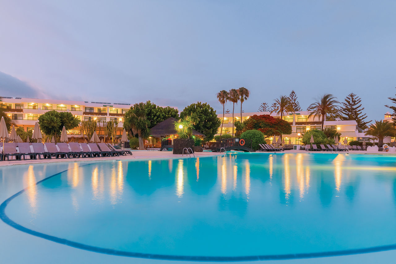 Nestled in tropical gardens and surrounded by majestic mountains, this sleek and stylish hotel sits right at the heart of Playa Blanca. Soak up the warm Canarian sunshine by the impressive lagoon-style pool or stroll down to the beach which is just minutes away. Shops, bars and restaurants are right on your doorstep too. There are plenty of facilities to keep the whole family entertained, from the fun-packed activities for kids at the children?s club to tennis and mini golf for grown-ups.Double rooms sleep up to 3 adults and have bathroom containing a bath with shower attachment, hairdryer, air conditioning, satellite TV and mini-fridge. Double rooms with Pool View. Double Privilege rooms include access to an exclusive Privilege lounge, personalised check-in and check-out, late check-out (subject to availability), personalised customer service, a la carte evening meal, daily press and weather forecast, MP3 docking station, coffee machine, bathrobe and slippers, pillow menu and pillow-top, pool towels and VIP amenities. Junior suites, Family rooms sleeping up to 2 adults and 2 children, Double Superior rooms inclusive of bathrobe and slippers, MP3 dock and pillow menu, and Double rooms for Sole Use are also available.