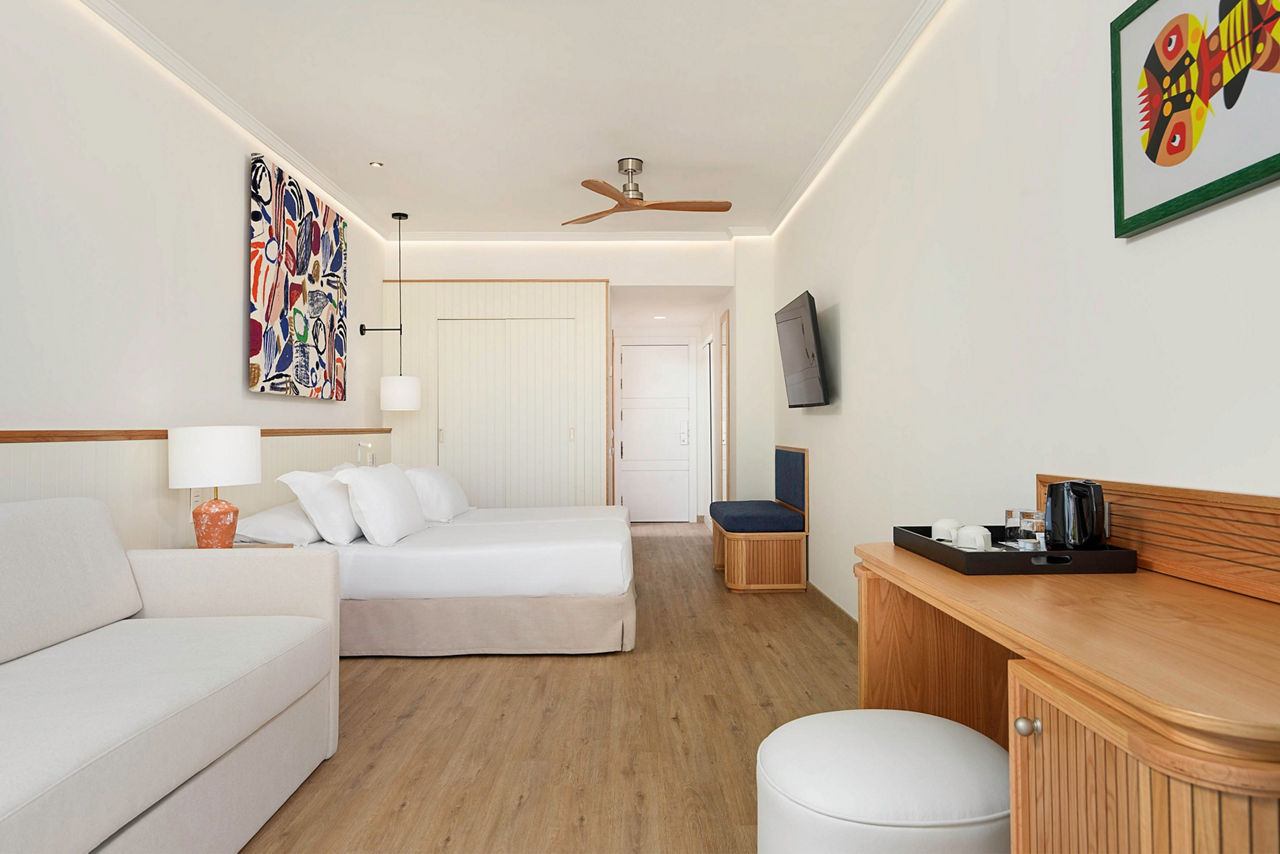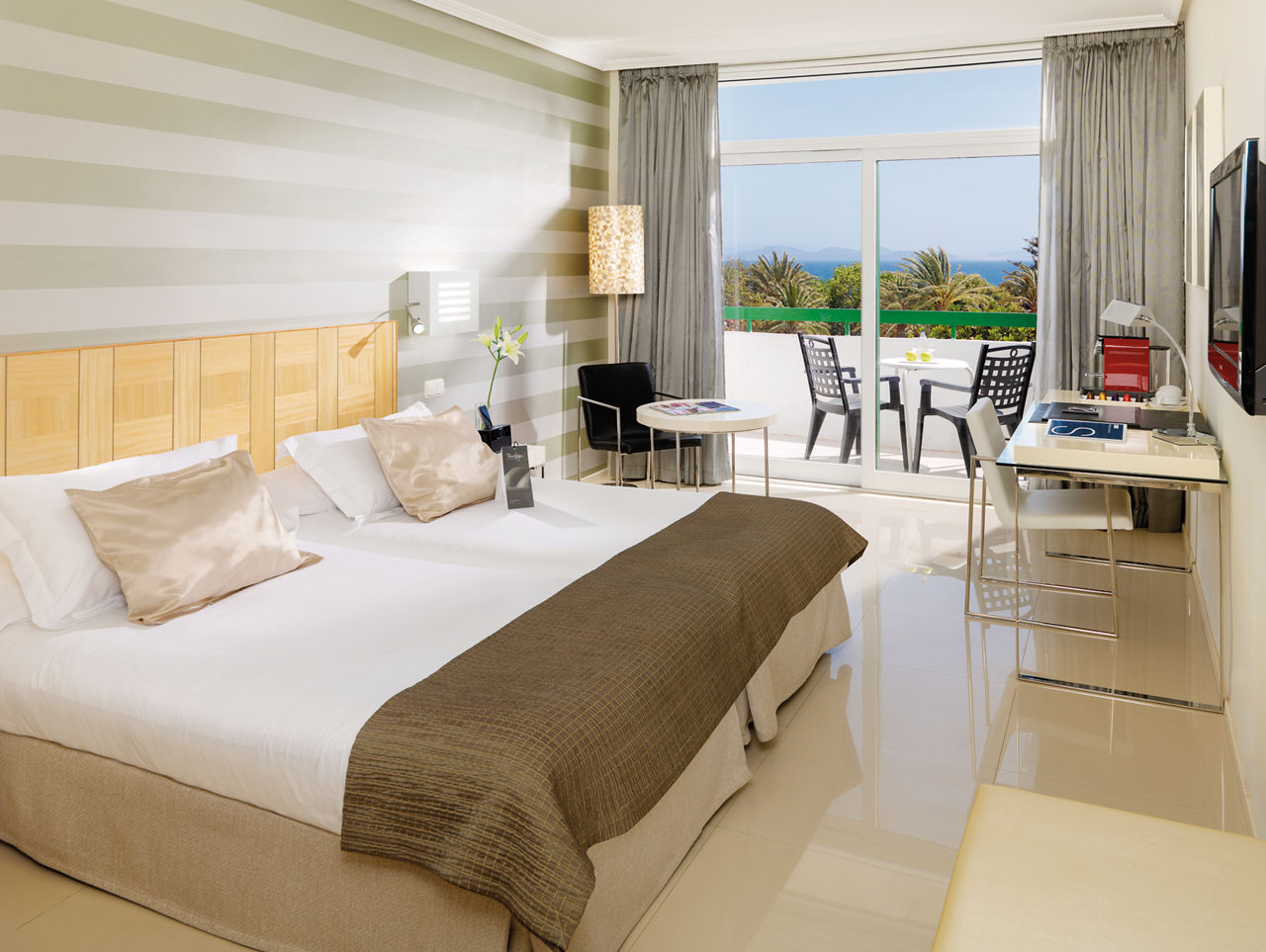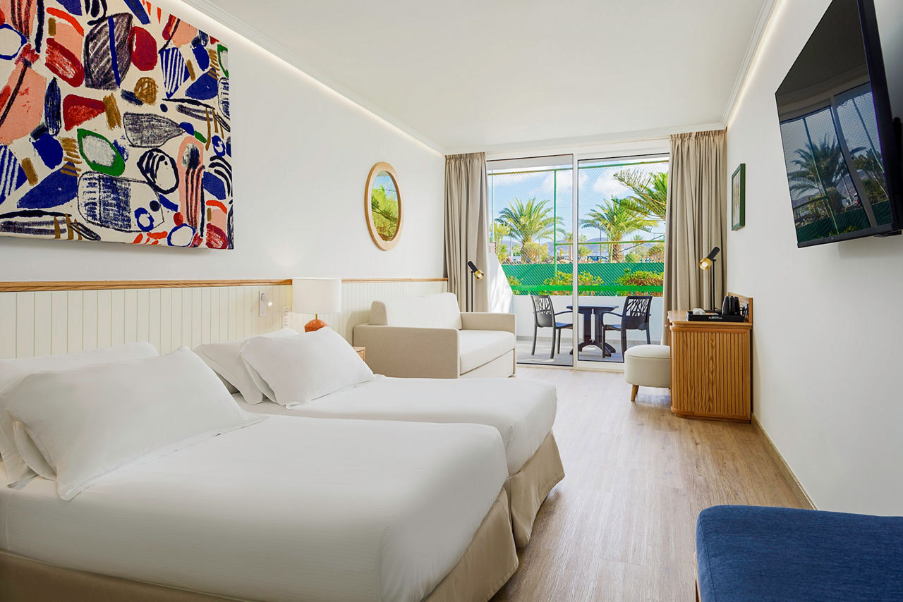 Nestled in tropical gardens and surrounded by majestic mountains, this sleek and stylish hotel sits right at the heart of Playa Blanca. Soak up the warm Canarian sunshine by the impressive lagoon-style pool or stroll down to the beach which is just minutes away. Shops, bars and restaurants are right on your doorstep too. There are plenty of facilities to keep the whole family entertained, from the fun-packed activities for kids at the children?s club to tennis and mini golf for grown-ups.Double rooms sleep up to 3 adults and have bathroom containing a bath with shower attachment, hairdryer, air conditioning, satellite TV and mini-fridge. Double rooms with Pool View. Double Privilege rooms include access to an exclusive Privilege lounge, personalised check-in and check-out, late check-out (subject to availability), personalised customer service, a la carte evening meal, daily press and weather forecast, MP3 docking station, coffee machine, bathrobe and slippers, pillow menu and pillow-top, pool towels and VIP amenities. Junior suites, Family rooms sleeping up to 2 adults and 2 children, Double Superior rooms inclusive of bathrobe and slippers, MP3 dock and pillow menu, and Double rooms for Sole Use are also available.
