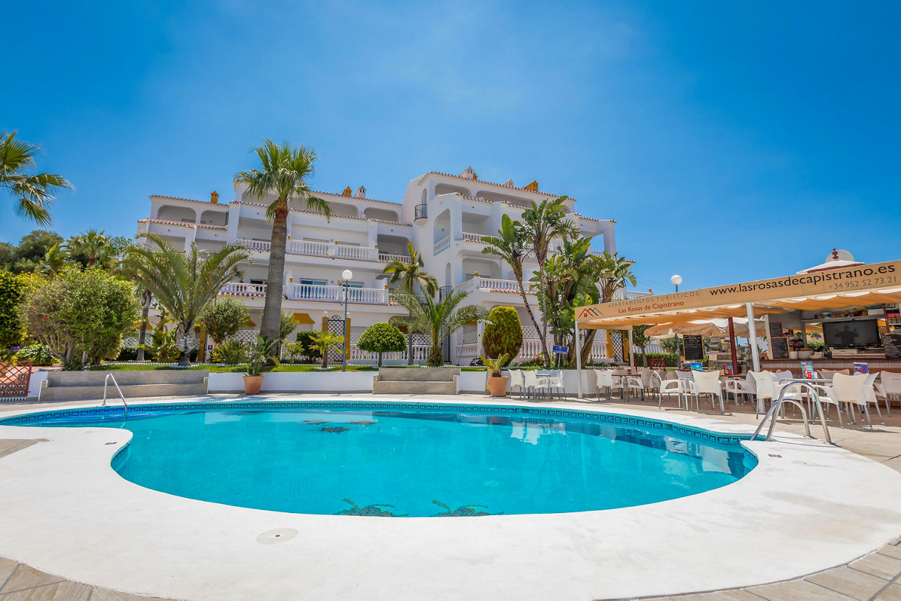 Experience the idyllic Las Rosas de Capistrano self-catering apartments in the heart of Nerja's hillside. Set amidst lush gardens and boasting stunning sea views, these charming apartments offer a tranquil retreat for your Spanish getaway. Step into a world of comfort as you unwind in the bright and well-equipped apartments, perfect for families and couples alike. Soak up the sun by the inviting pool with a drink in hand or venture downhill to the nearby sandy beaches for a day of relaxation. With Nerja's bustling centre just a short walk away, discover local flavours at traditional tapas bars or seafood restaurants and immerse yourself in the rich culture of this delightful Andalusian town with the freedom of self-catering.Room Options