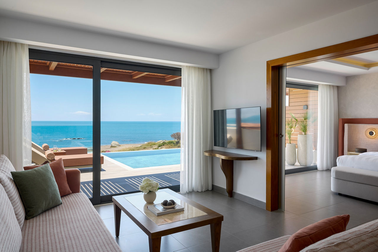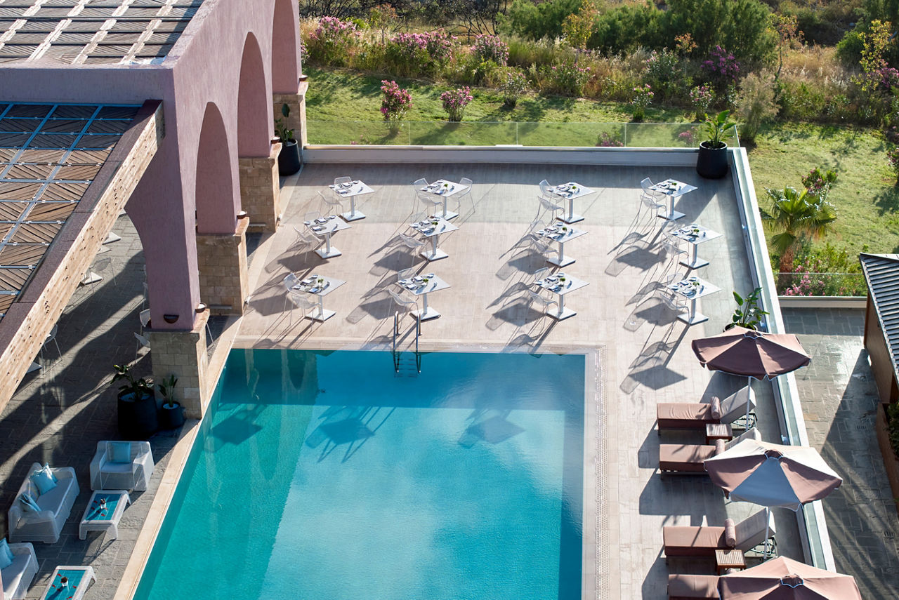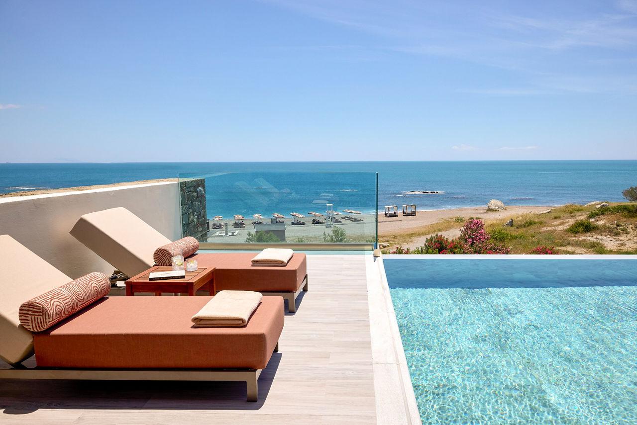 The award-winning Boutique 5 HotelSuperior Deluxe rooms sleep up to 3 adults and have a bathroom containing a bath and separate shower, air conditioning, hairdryer, bathrobe and slippers, flat screen television and balcony. Junior suite with Private Pool, Superior Junior Suite with Private Pool 1st Level, Mediterranean Suite, Executive Suite, Superior Junior Suite with Private Pool 2nd Level are also available. Please note that all rooms apart from the Superior Deluxe rooms have a terrace.